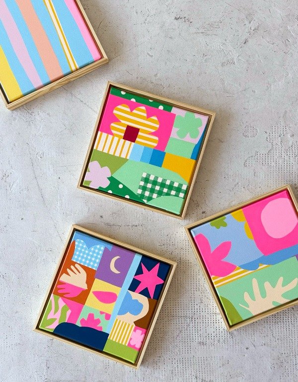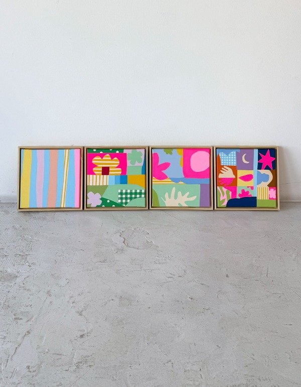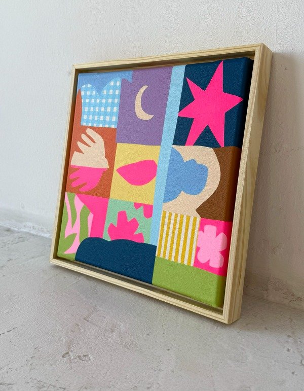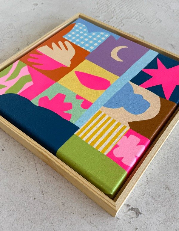 Cada bastidor está pintado a mano. Es una pieza única, pensada para habitar un espacio alegre y acompañar a quien la elija.
